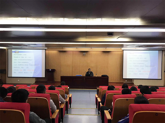 刚开场,曹教授沉着稳重、内敛智慧的形象就已经深深地印入同学们的脑海,大家的眼神里都充满了期待。曹教授不疾不徐地将他的经验、建议缓缓道来,其中不乏幽默的讲解和许多旁征博引,能使同学们更好地理解他所叙述的内容。同时,他还将平时我们考试时所感受到的迷茫和莫名情绪,以专业的视角和心理学独有的方式对大家进行了指导。
