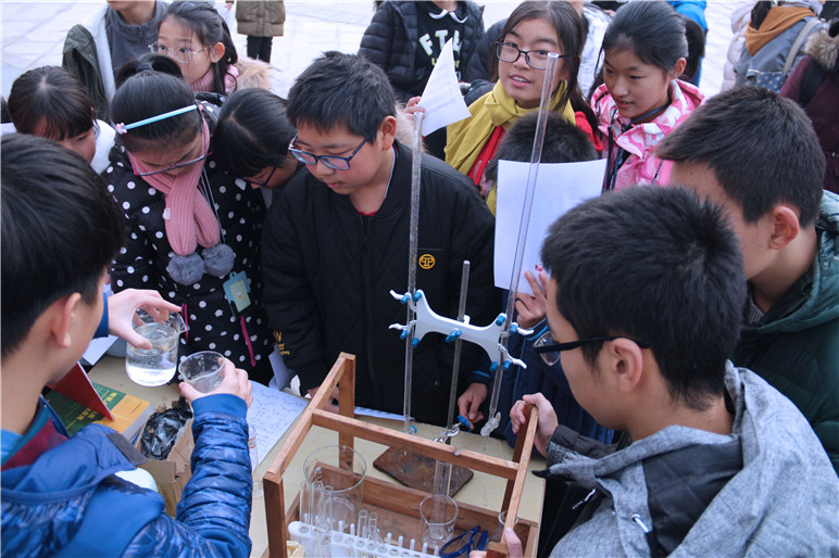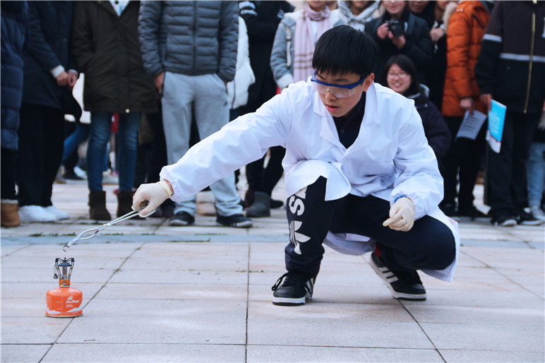 下午3点40分,同学们便陆陆续续地开始布置场地。他们摆出精心制作的社团展板,准备着各式活动和相应的精致小礼物,每个人都忙碌而快乐着。不一会儿,同学们纷纷涌入广场参与社团活动,随机问答、知识竞赛、趣味科普等一系列吸引人的形式,让同学们在玩乐的同时也学到了不少知识,得到了心仪的奖品。活动中,最激动人心的还是在广场中心的表演——从宅舞社准备的舞蹈,格子音乐社的歌曲,到化学社的化学实验和国学社的汉服展示,都引来了同学们极大的兴趣。