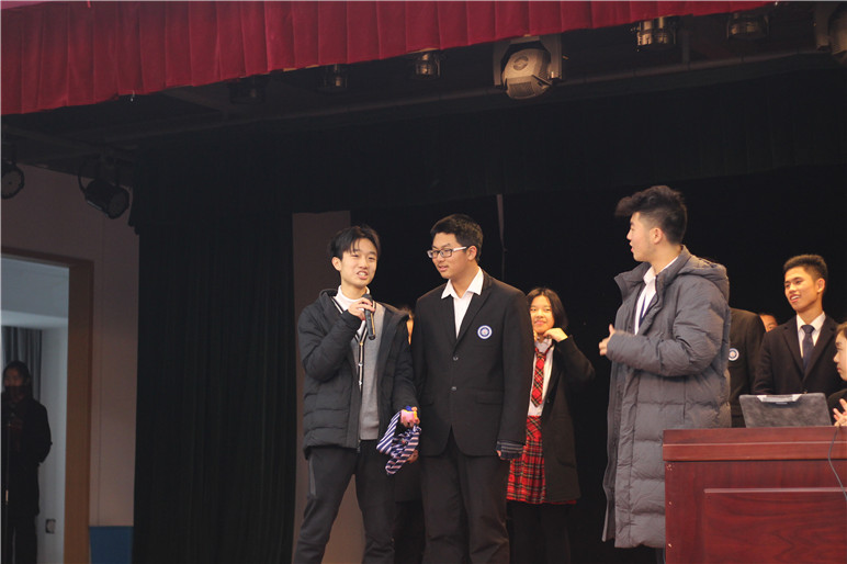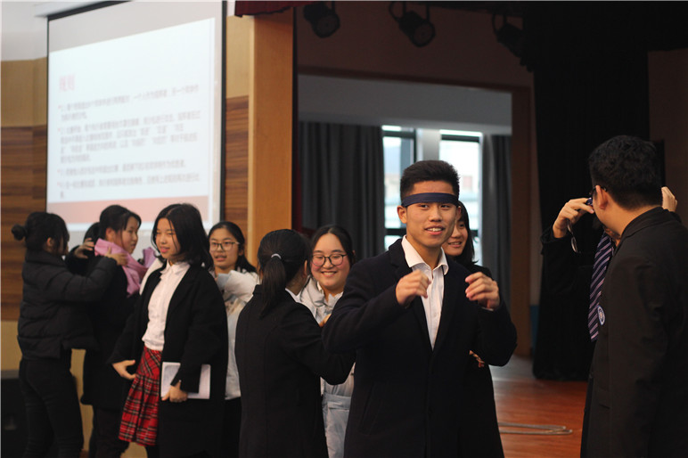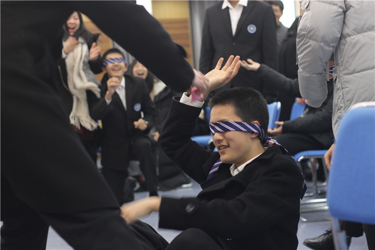 比赛结束后,主持人采访了这场比赛最后的获胜者,来自二(C)班的褚骏,他说:“我当时被蒙上眼睛感到很无助,但是一开始何嘉和(搭档)就选了一个很好的位置(别人很难砸到我)让我坐着并且我们提前设定好了操作,所以在后来比赛的过程中比较占优势。在采访了一对失败的同学中,他们谈到他们一开始没有设定好目标,导致没有砸中别人反而自己被砸中,退出了比赛。其实常言说的领导力,远不仅仅局限于指挥其他人,安排他人的工作,更多的,则是找到彼此合作间的默契,通力协作。领导力,更多的是从他人的角度(蒙眼带来的无助感和无方向感)思考问题,从而提高效率,将领导力最大化体现出来。