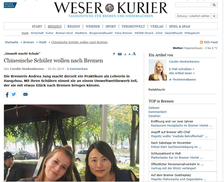 “中国学生期待前往不莱梅”——我校“Blaugrüne Engel”共享环保袋项目被德国不莱梅和下萨克森日报报道