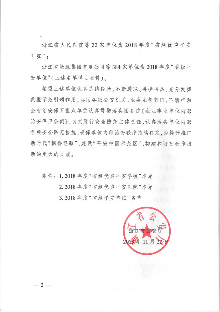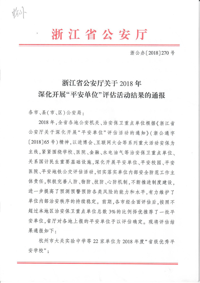 近日,省公安厅公布了2018年深化开展“平安单位”评估活动结果,我校被授予“2018年度省级优秀平安单位”称号。