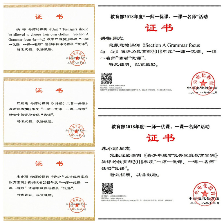 ◎ 2位教师的课获评2018年“一师一优课、一课一名师”活动部级优课,3位教师的课获评省级优课。