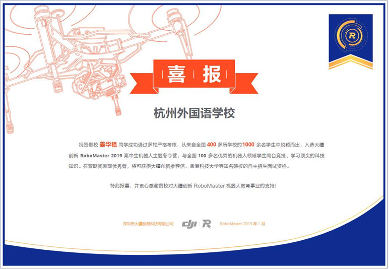 大疆创新RoboMaster2019高中生机器人主题冬令营 |