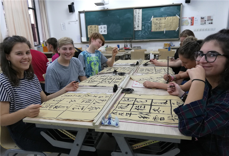 ◎ 发挥汉语国际推广基地资源优势,接待26批国(境)外访问团来访,派出12批访问团(含交换教师)出国(境)访问,加强对外交流与合作。