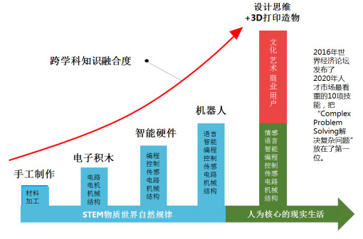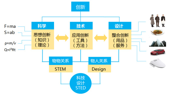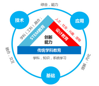 STEM教育是逐步将知识变为现实生存能力的教育过程。设计教育注重培养人们解决复杂问题的能力。STEM教育更注重学科的融合,基于项目式的学习,也是更多强调理工科的知识学习与技能训练,而设计是从社会关系、人们需求、经济关系等生活角度,发现问题,利用现有技术创造性地解决问题,如果现行技术解决不了,人们就会去研发新的技术,因而也会促进技术的发展。