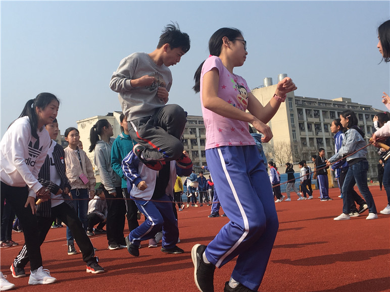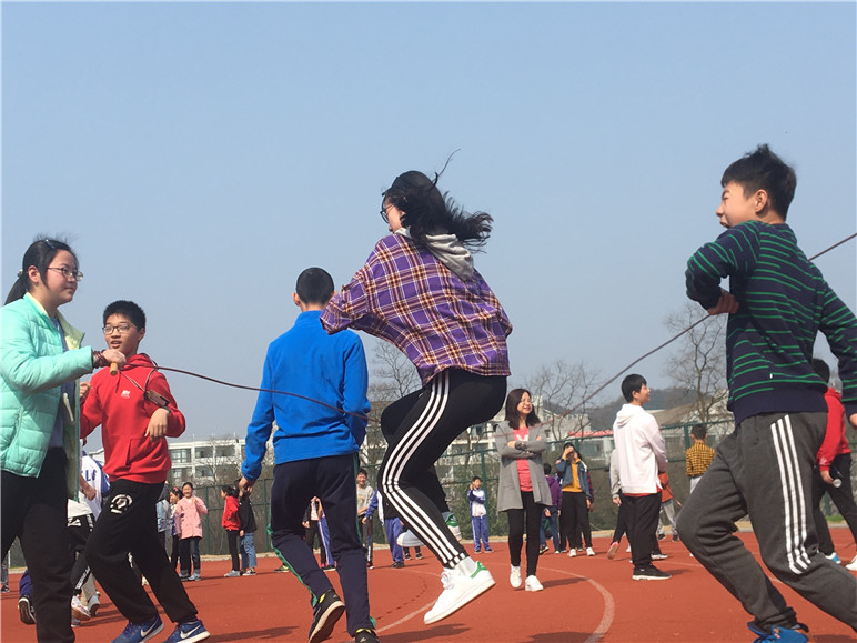 阳春三月,是万物复苏的季节,3月19日下午,初一年级在田径场举行了跳长绳友谊赛。