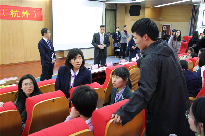 为尽地主之谊,高三大预班的同学们向远道而来的客人们介绍了杭州这座美丽的城市,我校丰富多彩的学习生活及校园活动。邵郁文和陈钱宇同学带着大家一同领略了杭州的风土人情,一道道令人馋涎欲滴、含有杭州故事的菜肴(如龙井虾仁、片儿川、西湖醋鱼等)让在座的各位大饱眼福。杭州的名胜古迹——西湖的四季之美,杭州春天的繁花锦簇、翠柳成荫也都令人深深陶醉其中。张义祺同学就杭外的基本状况,从学生作息、课程设置、对外交流、升学道路等方面着手作了简明扼要的介绍。郎天玥、林泓帆同学深入杭外特色,介绍了杭外五大节、社团活动、体育竞赛活动,照片和视频中有无数杭外教师与学生的身影,向日本友人充分展示了杭外融洽的师生关系、优秀的学子风采。我校民乐团的胡桐、张心扬、赖彦辰和王钰柯同学分别带来了二胡、琵琶、柳琴和古筝演奏,她们娴熟的技巧和丰沛的情感向外国友人展示了我国古典艺术的魅力,捕获了在场每一位观众的心。