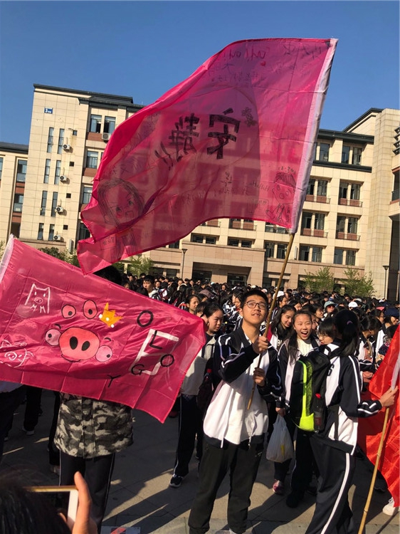 这一天,天高云淡,多日的大雨将天空刷洗得格外湛蓝,绝对是一个外出游玩的好天气。大家都已经整装待发,在广场上列阵,秀出各班独特的旗帜,这些旗帜多以各班班主任为中心,传达了同学们对老师们深深的爱。在这欢闹之中,我们出发了。