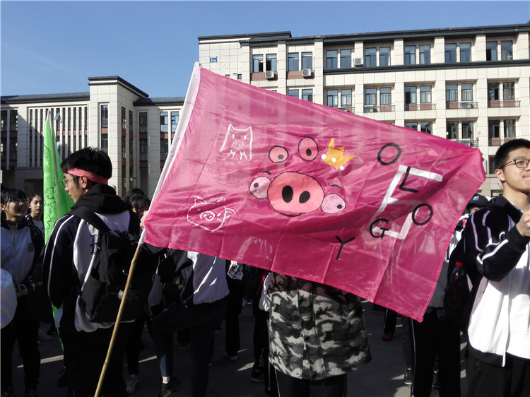 队伍最前方是我们的班旗,大家相约画上班主任的头像,带着甜甜的微笑在风中飘荡。