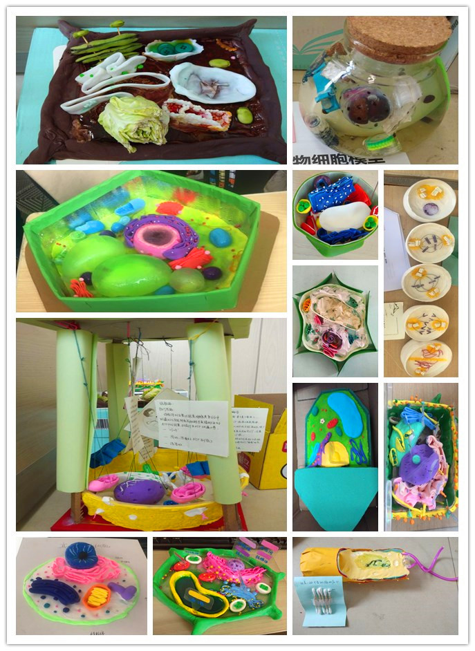 在细胞模型制作比赛中,高一年级同学制作出了植物细胞模型、动物细胞模型、微生物细胞模型等,大多数组在提供逼真的模型基础上都有详细设计说明、结构功能特点,甚至有些组还有模拟数据分析,制作材料有纸盒、泡沫塑料、黏土、毛线、蔬菜、海藻酸钠等,同学们非常善于寻找适合的实验材料。