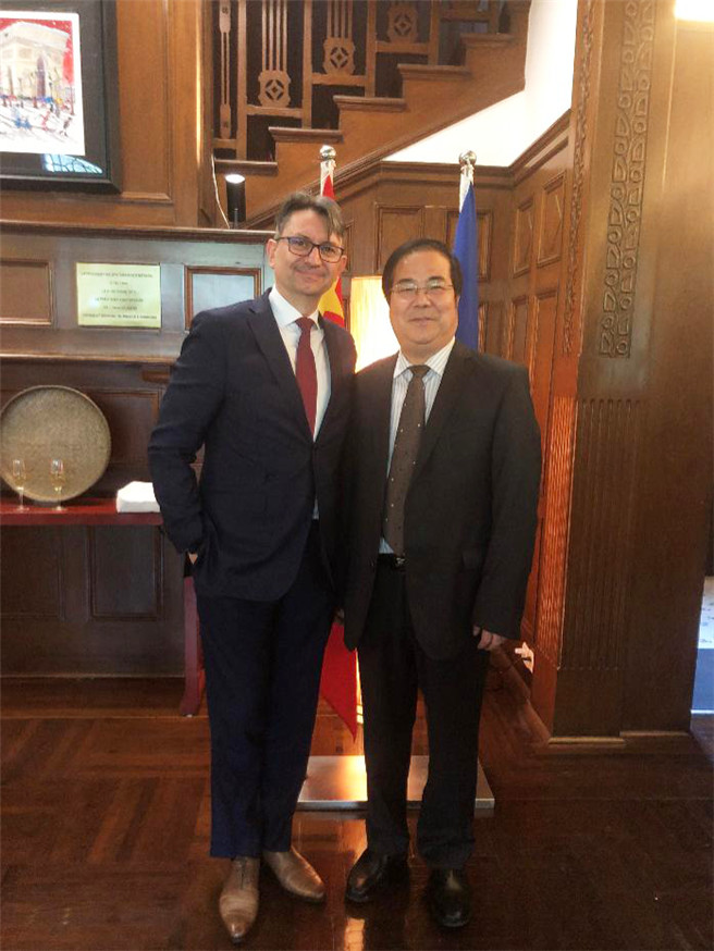 方健文校长与法国驻上海总领事何瑞宇(Axel CRUAU)先生合影