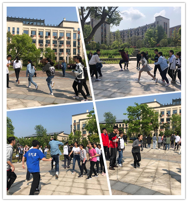4月17日课间,伴着熟悉的音乐,同学们纷纷走出教学楼,大家都跃跃欲试,准备在即将开始的跳长绳比赛中大显身手。