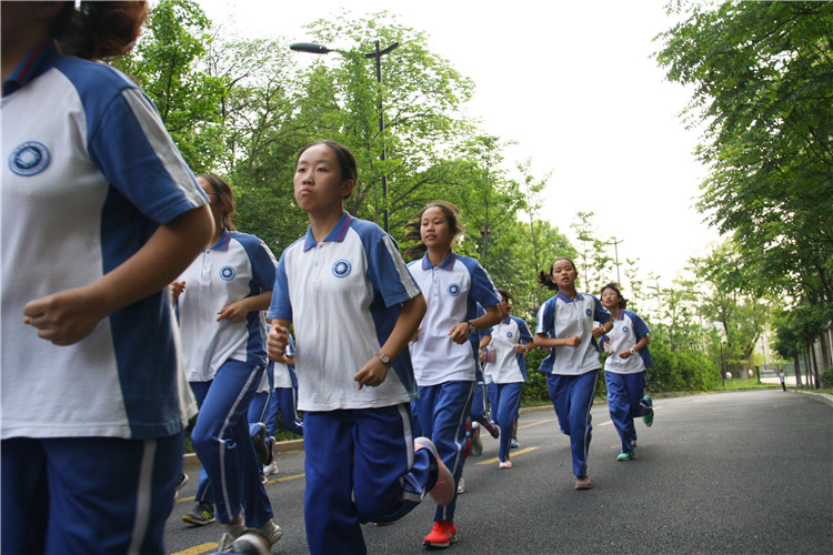 阳光长跑是我校的传统活动。同学们身着统一服装,怀着满腔热血与激情,依次按班出发。长跑路线是环校一周后再绕操场跑一圈,方到达终点。同学们迈着整齐的步伐,有序前进,嘹亮的口号声响彻整个校园。漫长的路程并没有将大家拖垮,反而使所有人越挫越勇,愈加团结一致。当每一个班级到达终点时,现场响起的热烈掌声,便是对杭外人坚韧与勇气最好的嘉奖。