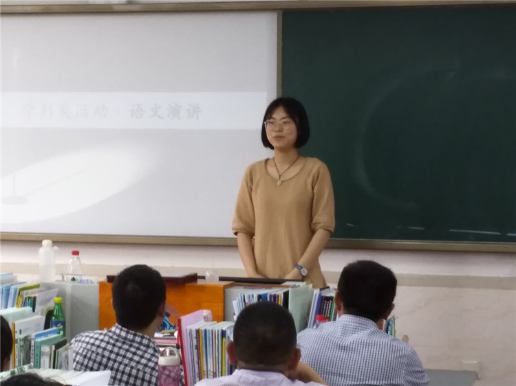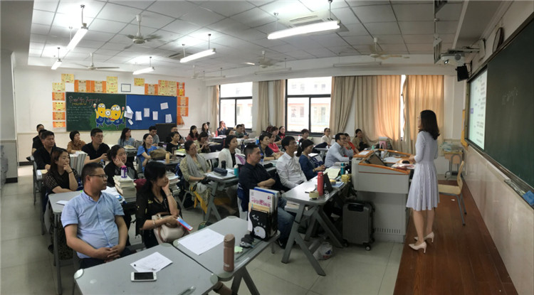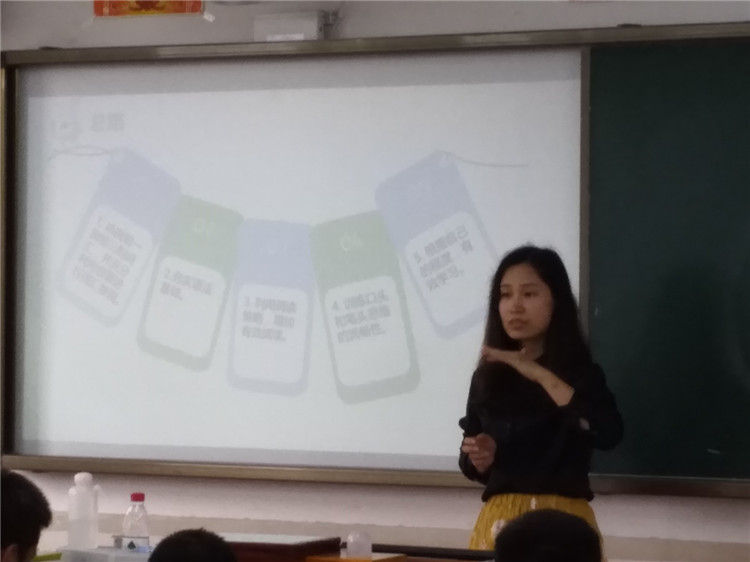 英语王文博老师结合精心制作的PPT,说明了同学们的英语学习现状,她提出同学们的学习应以课内为主,配合阅读加以拓展。