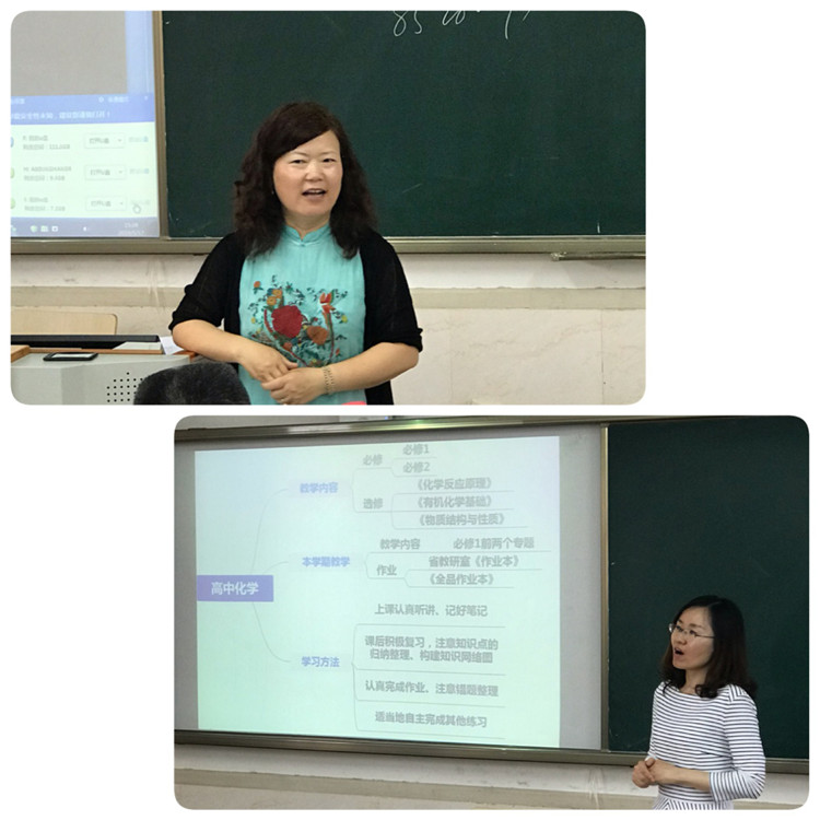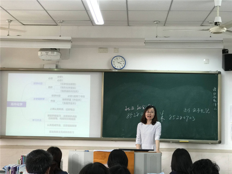 化学刘凌老师有条理地讲述了现阶段与接下来的教学内容,再重点讲了学习方法——上课时要认真参与,课后要重视基础,其次才是提升。刘老师说,只要肯下功夫,一定能把化学学好,这句话给了大家很大的鼓舞。