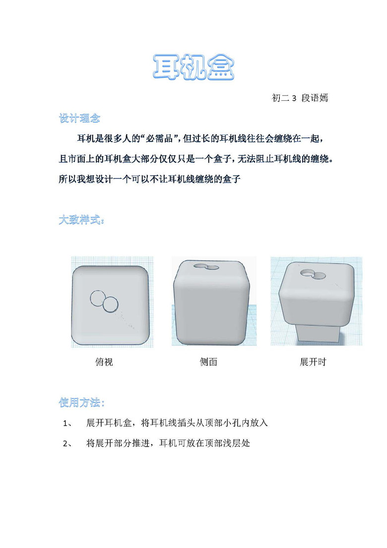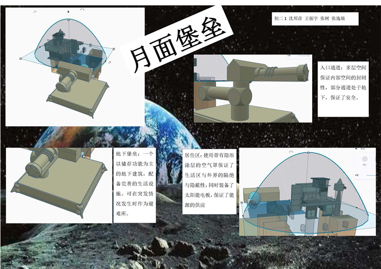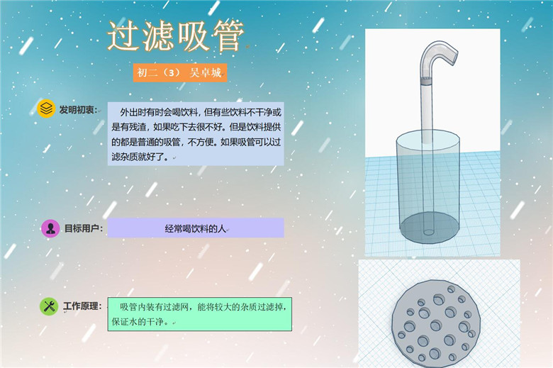 同学们通过讨论、团队合作,发现问题并寻求解决方案,利用3D建模设计软件把创意进行结构的搭建和设计,最终都设计出了令人满意的作品。