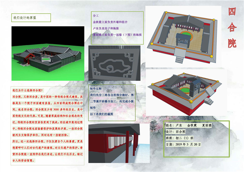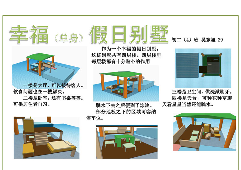 最终我制作的模型非常简单,由于是第一次尝试,我的设计并不成熟,与周围同学的独特的创意和精细的制作比起还有许多不足。但这于我而言是一次全新的体验,让我感受到了信息技术学习的乐趣。