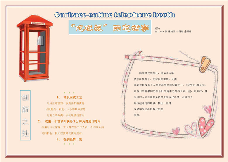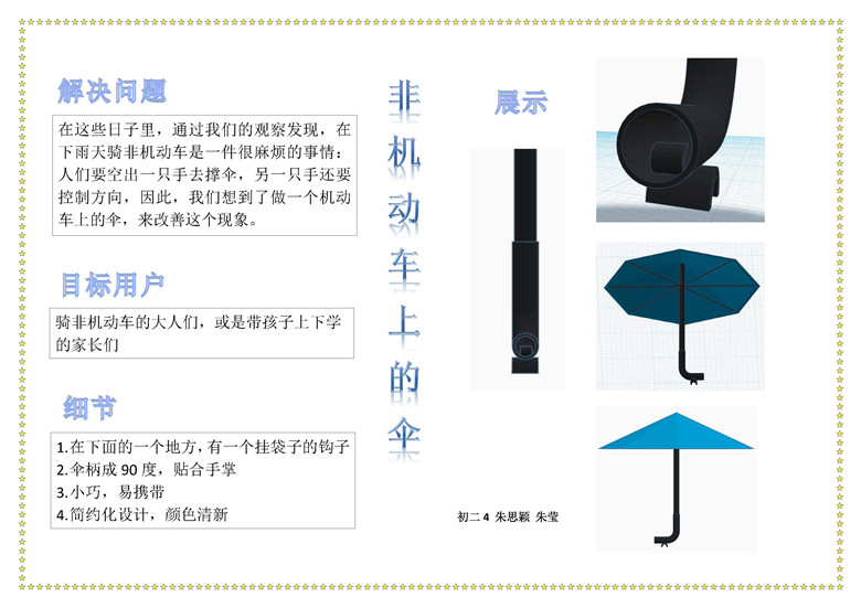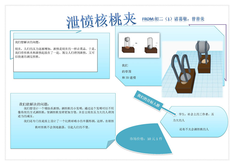 为激励同学们关心身边的人和世界,了解身边的科技发明,指导同学们主动发现和解决实际问题,尝试科技创造,4月20日,我校举办了科技创意商用发明作品展。