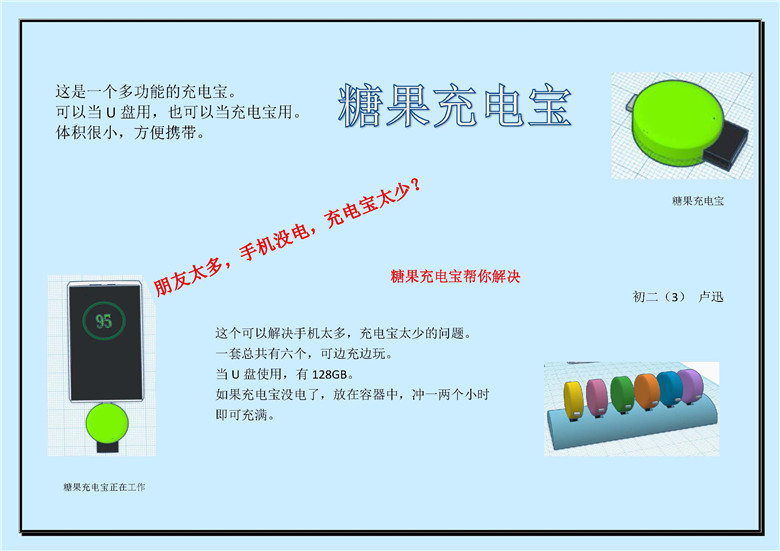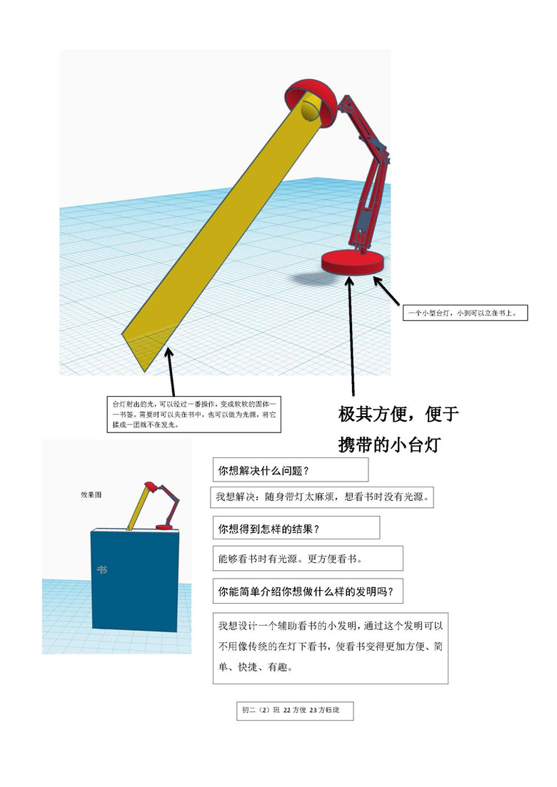 通过这次活动,我们学到了很多。一个不起眼的小发明也许会对我们的生活造成很大的便利。只有关注到了生活中的小细节,才能制作出真正造福人类的发明。我们在学习到人生价值观的同时,也提高了自己使用Tinkercad的水平(在此感谢万老师的悉心教导)。