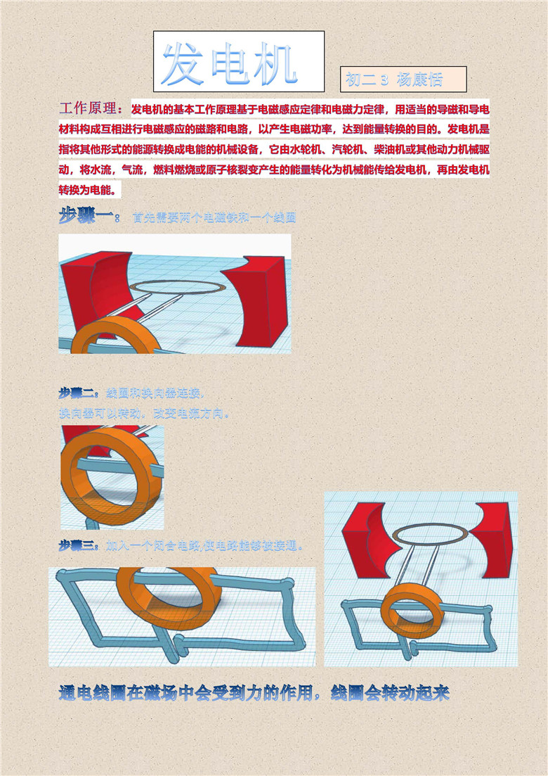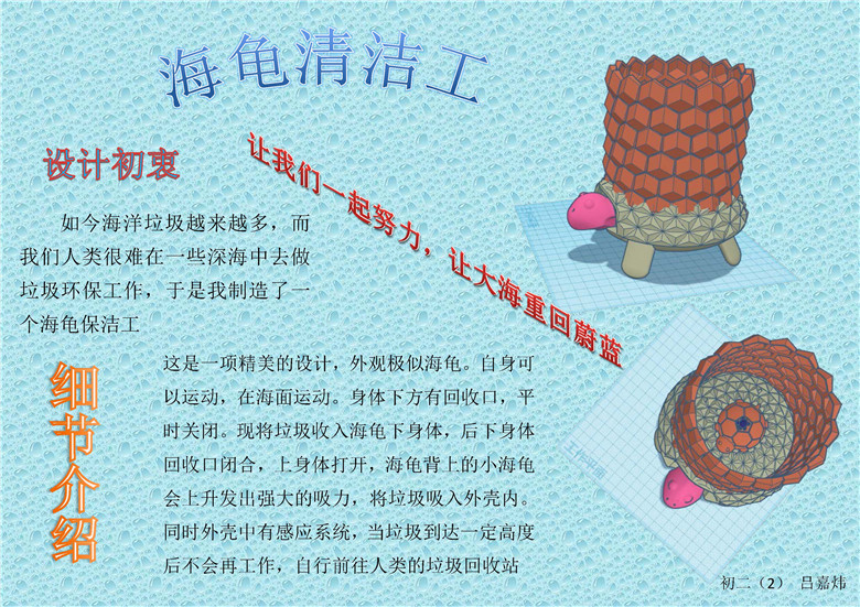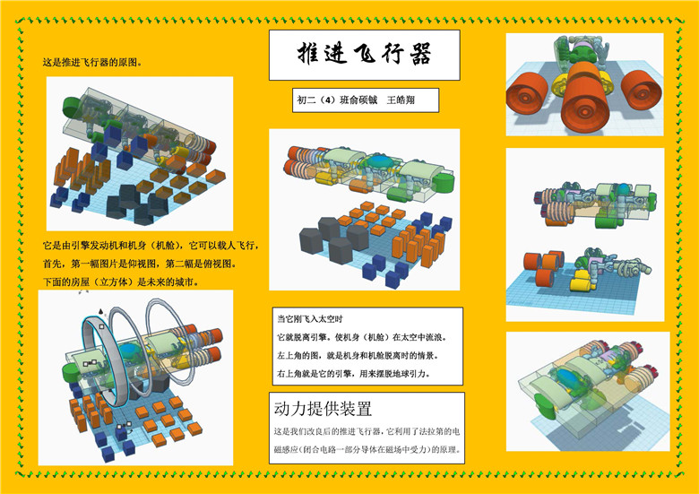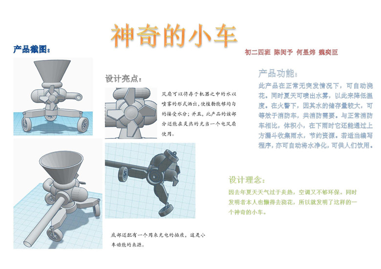 在设计过程中,我们遇到了许多问题,万老师都很耐心地帮我们解答。最大的一个问题就是切出来的汁水应如何处理,刚好我们学完了《电与磁》这方面的知识,于是就选择了加入风力发电机来排出汁水,也算是活学活用。