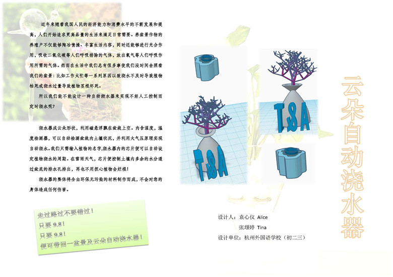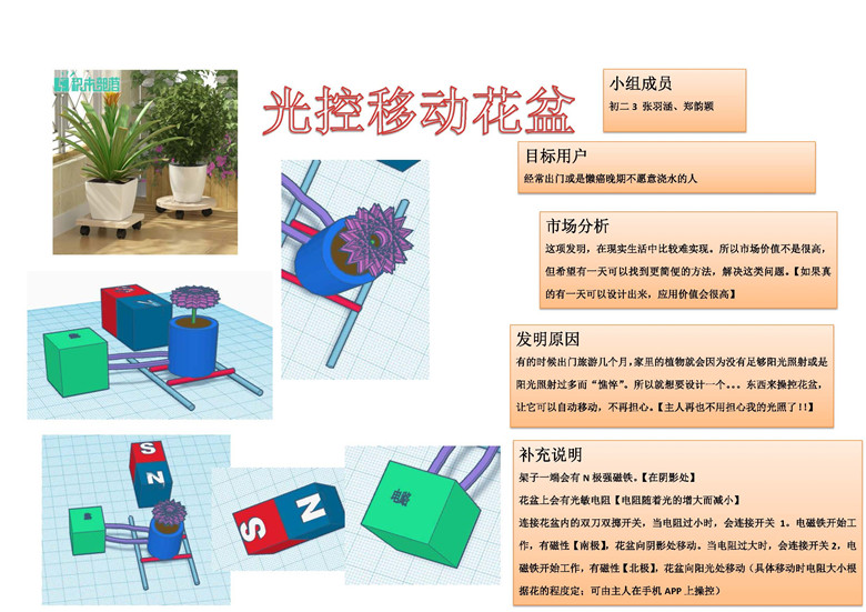 其实我们组的三位同学刚开始对3D建模这方面都不是很感兴趣,但这次科技节给了我们一个了解和学习的机会。三个礼拜的学习使组员们对3D建模产生了浓厚的兴趣,鲍韵欣同学在课余时间内也会打开Tinkercad做一些小发明。
