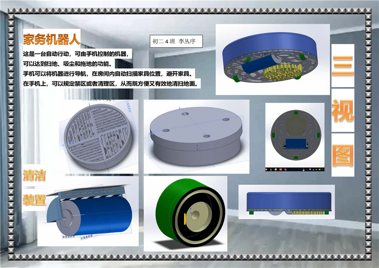 在制作过程中,我们遇到不少问题,有电脑技术方面的问题,也有设计方面的问题。我们一开始处于想象阶段,并没有考虑制作出来的机器在现实中能否使用。经过小组各成员提出的意见和交流,我们对机器进行了不少改动。