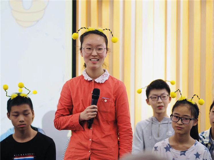 5月23日,仿佛是艳阳高照的午后激起了整个初三年级的热情,在那个转角处的报告厅里,洋溢着紧张、欢乐的气氛。32个可爱的蜜蜂头饰,32对触角,点燃这热情的,便是外文节spelling bee单词拼写大赛。