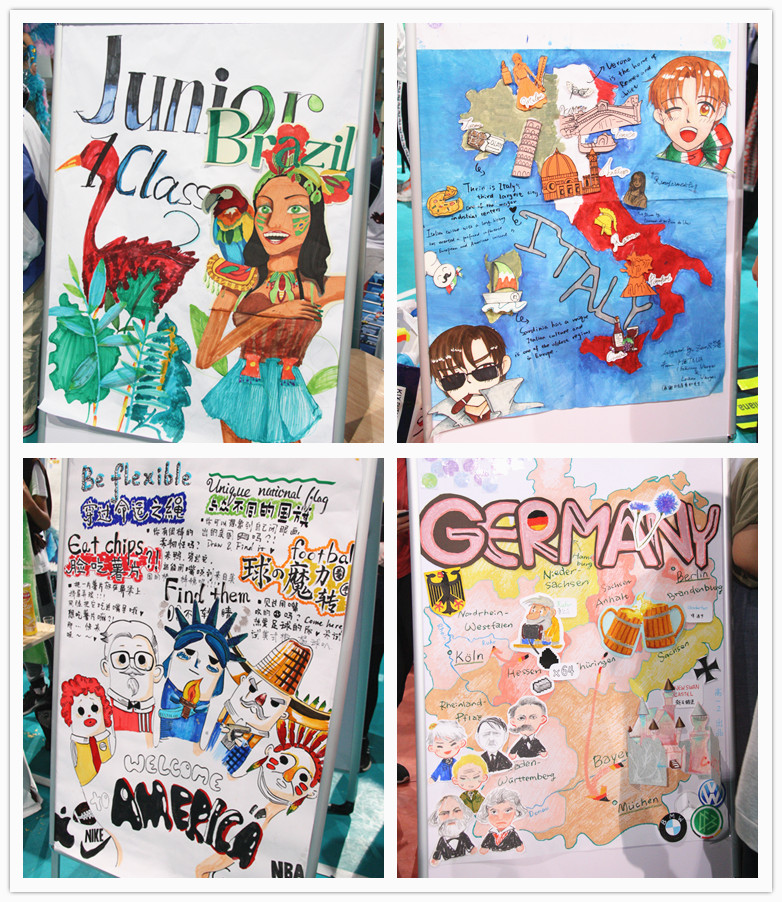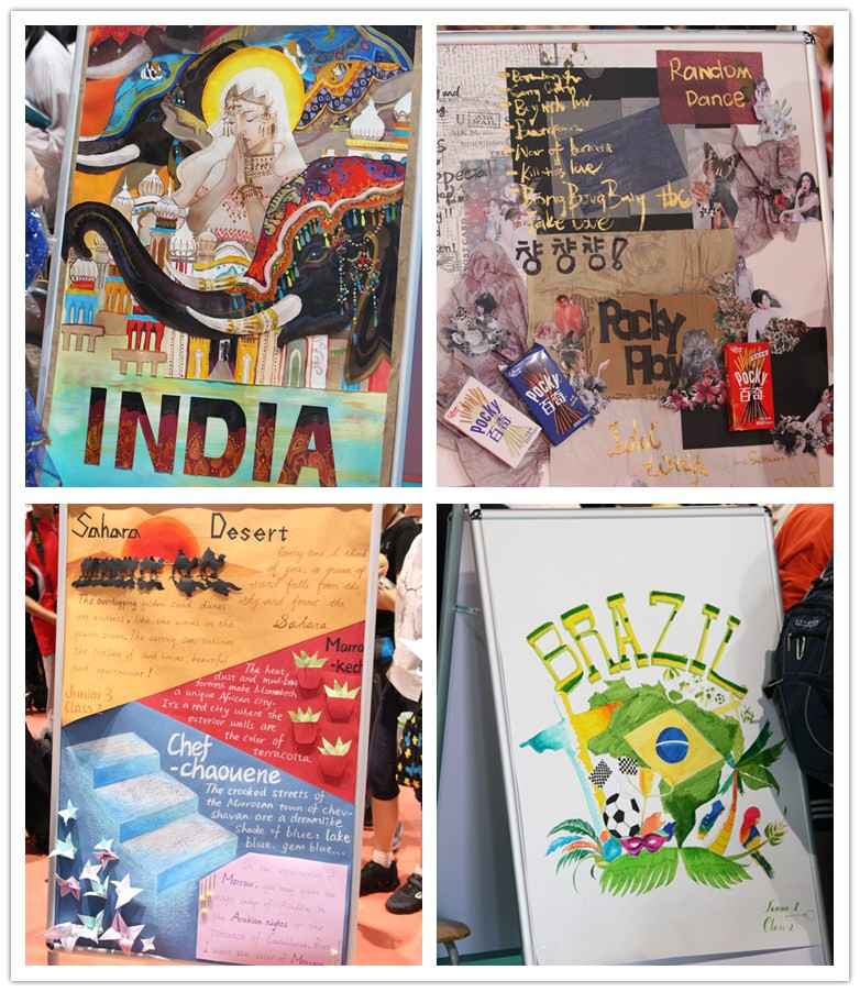 此次文化嘉年华游园活动以班级为单位抽取国家,以该国为主题绘制展板,布置展位,设计表演活动并演出。在这一个月中,所有班级都认真准备,从代表国文化资料的选取,到购买服装、制作道具,直到最后的呈现。
