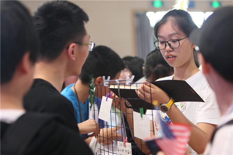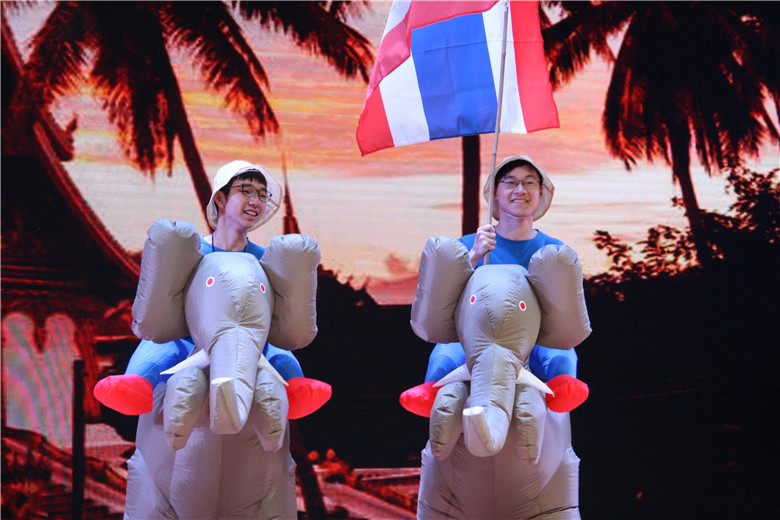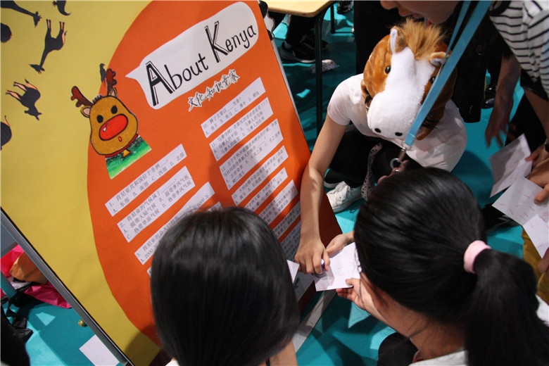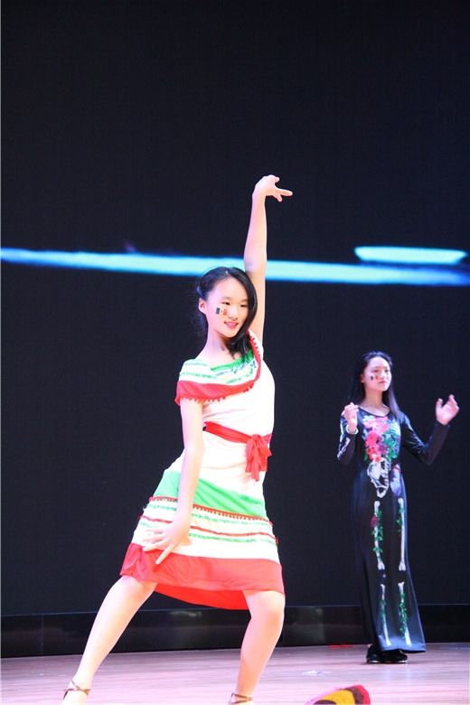 早上8点,各个班级陆续进场布置展位。随后,活动正式开始。舞台上,两位主持人带领大家进行了一场虚拟环球旅行,我们来到了埃及探索法老的墓穴之谜,领略了非洲大陆的狂野和原始,听到了意大利经典歌剧和美国嘻哈饶舌,流连于南美热情的桑巴和探戈,也同韩文歌曲一起舞动。全校学生都感受了世界各地的节日气氛,领略了风土人情,体会了地球村的“和而不同”。