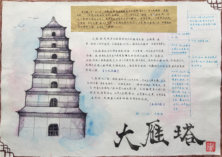 历史与社会的小报,我选择了古城西安的大雁塔。