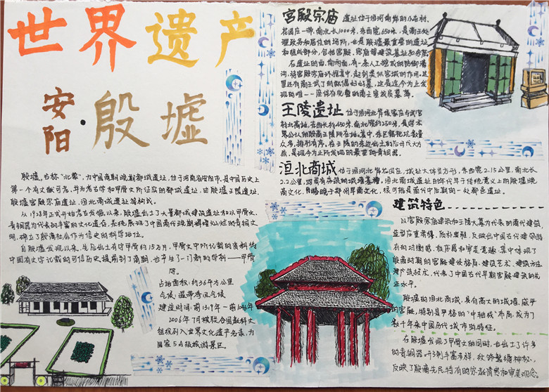 历史与社会这样的开放性作业,我觉得很有发挥空间,我非常喜欢。若你认真去做了,真的受益颇多。你不仅了解了我国的各种遗产地,也对当地文化有了更深的了解。毕竟,做好一张小报,需要查阅许多各个方面的资料,不知不觉中,你便懂了很多了。