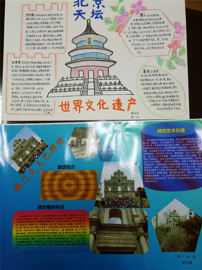 走进世界遗产——记初一年级历史与社会世界遗产小报展