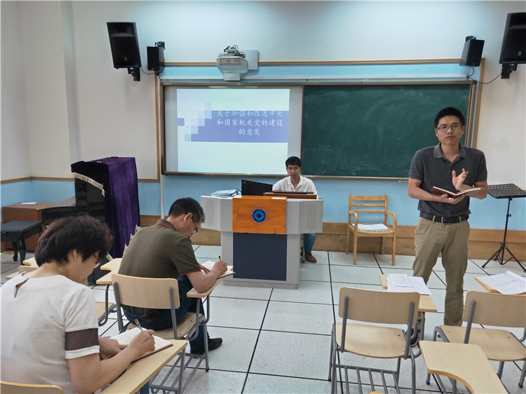2019年6月5日,体艺技支部在体育馆7210教室组织学习了《关于加强和改进中央和国家机关党的建设的意见》。本次会议由支部书记童云波同志主持、支部党员刘江锋同志主讲。