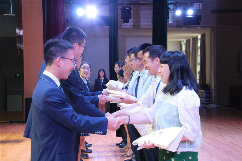 你们,书写了高中三年一个个美丽的故事,一个个感人的瞬间。当然,和你们同行的,是台下坐着的领导和老师们,他们为你们的小错误焦虑,为你们的小任性担心,为你们的进步喜悦,为你们的成长欣慰,甚至为你们的好消息半夜欢喜得睡不着觉。同学们,请把掌声送给我的同事,你们的老师们!