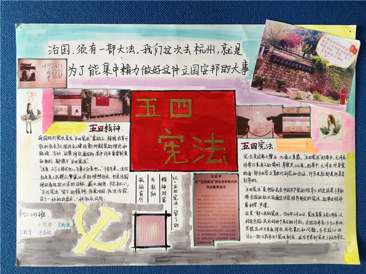 5月,学生们在参观“五四宪法”纪念馆后,制作了精美的小报,并进行了为期两周的展览。