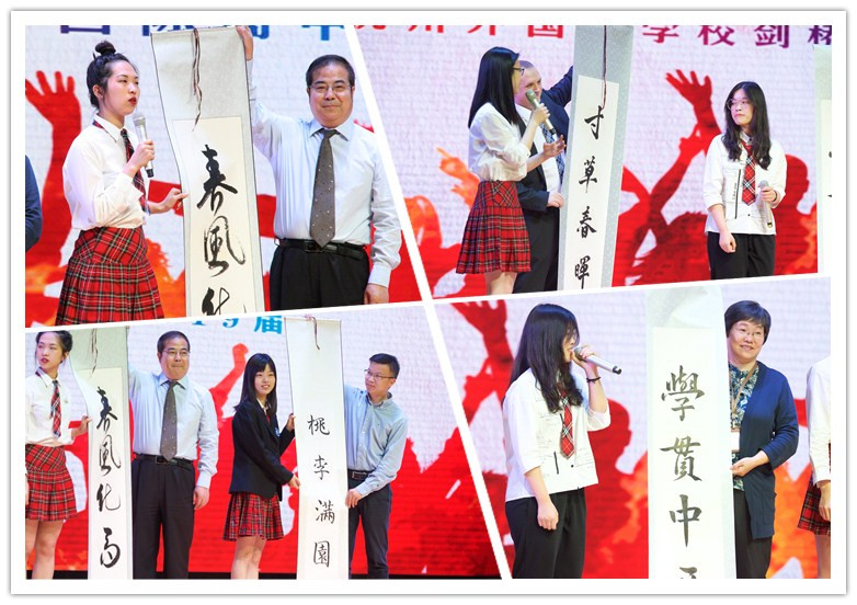 还是同学们在舞台上的精彩表演:在大气、美丽校园背景下,《Empire of angels》钢琴小提琴协奏曲那激越优美的旋律?《We Are Young》那嘹亮的歌声,唱出了大家共同的青春激情?书法四条屏“寸草春晖”“学贯中西”“春风化雨”“桃李满园”,饱含着对母校的深情厚谊?