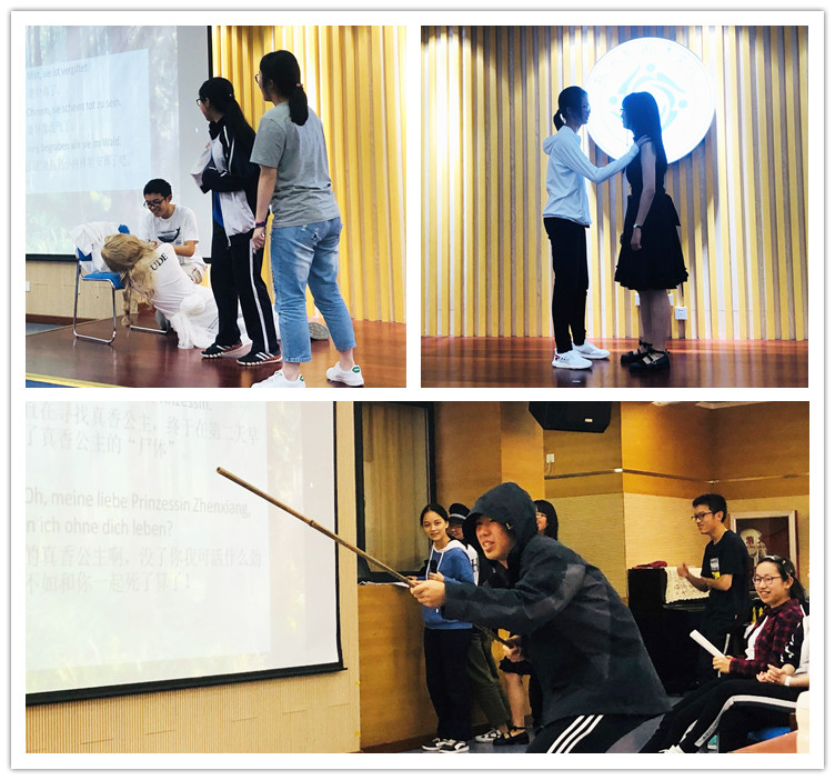 最后一组是德语班的节目。作为压轴,他们果然不负众望,带来的是改编版的《白雪公主》。他们在原版的基础上加入了大量现代网络流行元素,令人耳目一新。甚至有一位男同学不惜牺牲形象,男扮女装出演了白雪公主一角。整出剧气氛活泼欢快,为这场活动画上了一个完美的句号。
