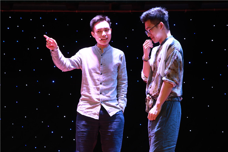 我要感谢和我演对手戏的王品月同学。站在台上时,我方才明白何为“书读百遍,其义自见”,何为“学而时习之,不亦说乎”。承蒙其关照,我竟然在和她的一次次磨戏中不断加深了对孔子这个人物的理解。