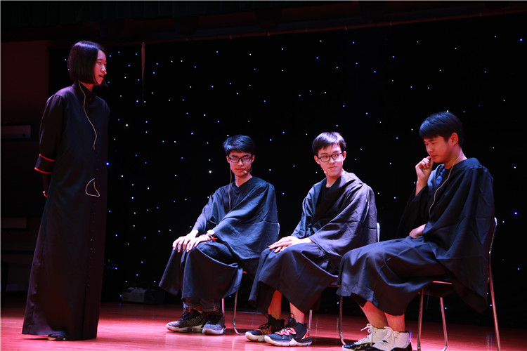 经过一个学期的精心准备和班内展示,四个剧组脱颖而出,他们用精彩的演出表达了对儒家经典《论语》的理解,带领大家走进了孔子的精神世界。李力、戎宏斌、何诚、王小飞、许海萍、林存富6位老师担任了本次汇演评委。