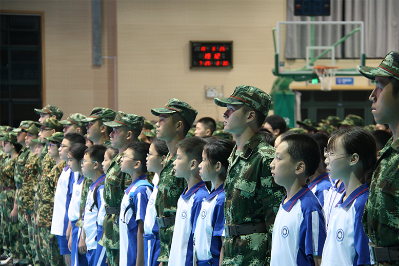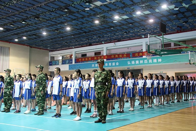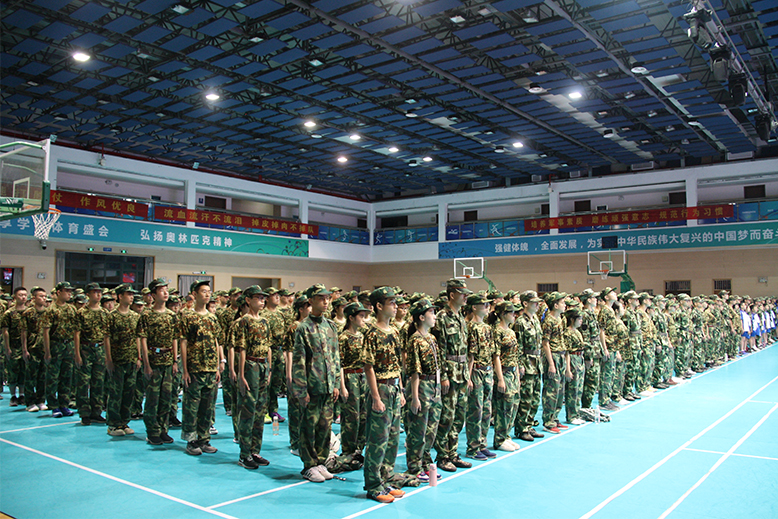 2019年8月25日晚,我校2019级高一军训、初一综合实践活动开营式在体育馆举行。校长方健文,党委书记徐继彬,副校长楼林军、吴锋刃,党委副书记、纪委书记唐玉娣,副校长张俊峰,17名教官,学生处负责人,初一、高一年级组长及各班班主任出席仪式。仪式由学生处副主任何诚主持。