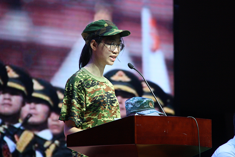 学员代表高一6班赵欣怡同学发言。赵欣怡同学表达了她和同学们对本次军训和接下来高中学习生活的期待。她表示,军训是一次提升自我、锻炼自我的机会,号召同学们在训练中不怕苦、不怕脏、不怕累,充分展现出青年人、杭外人的意志、风采和信心。