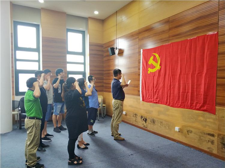 首先,后勤支部为沈岚、江军辉两位同志过“政治生日”。两位同志深情地回顾了入党以来的点点滴滴,表示要立足岗位,求真务实,保持一颗平常心,在工作中不断突破,主动作为,充分发挥党员的先锋模范作用。史伟国同志代表支部寄语两位党员,并带领全体党员重温入党誓词。