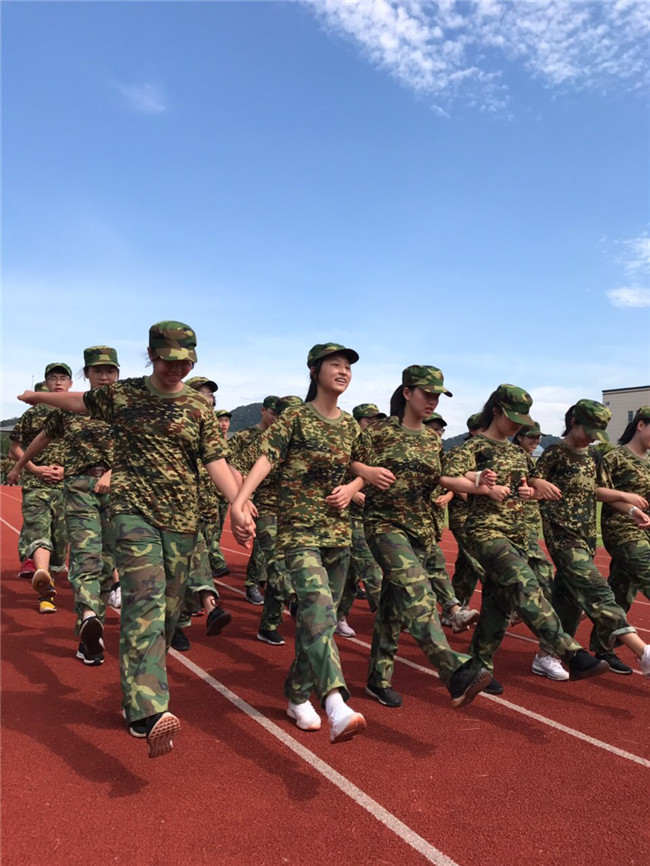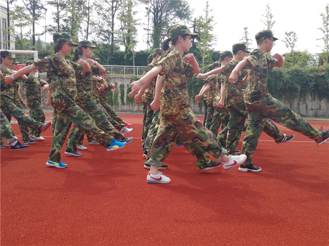 早上就异常炎热,站军姿的时候,强烈的太阳光刺得我们睁不开眼,但大家都咬牙坚持。就算是有些同学手臂、脖子晒伤了,去涂点烫伤药,也马上归队继续训练。
