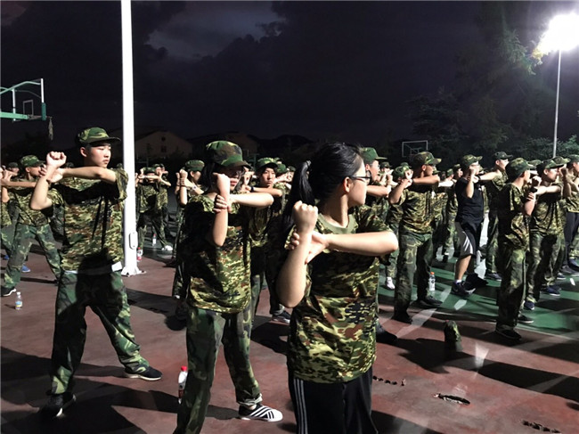 晚上的训练是我们唯一的期待——威猛的军体拳和轻松的娱乐。我们从第一个动作学习到第八个动作,动作加呐喊都很有气势,应证了教官所说的——眼中有杀气!练完拳后,还组织了篮球对抗赛,特别是教官与学生的对决,那三分球绝杀,使气氛达到了高潮,叫喊声此起彼伏,为这一天画上了圆满的句号。