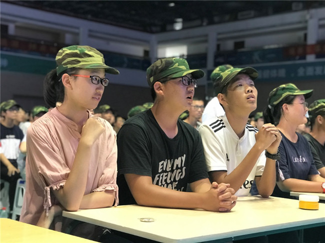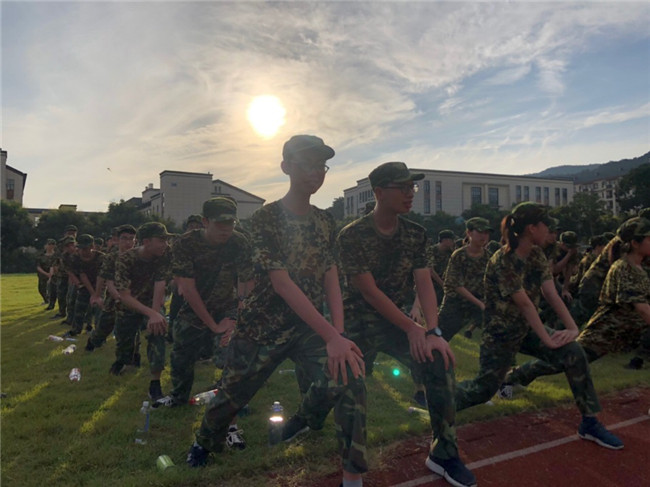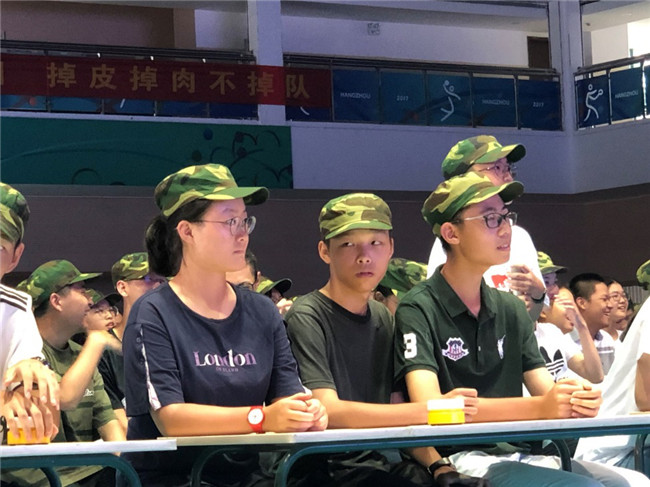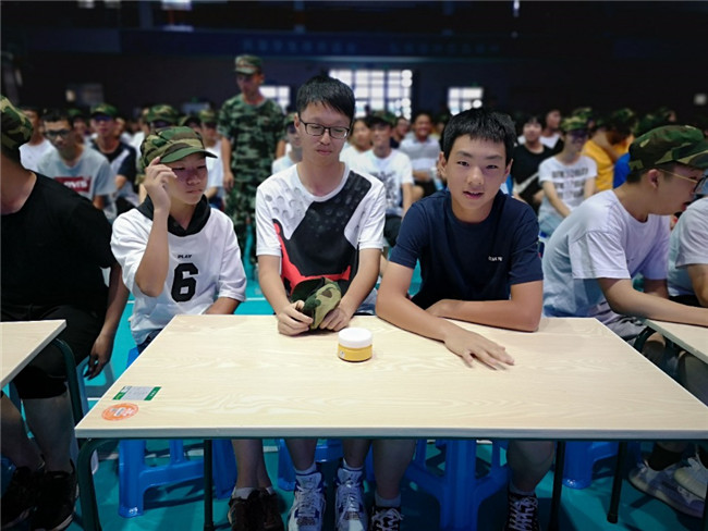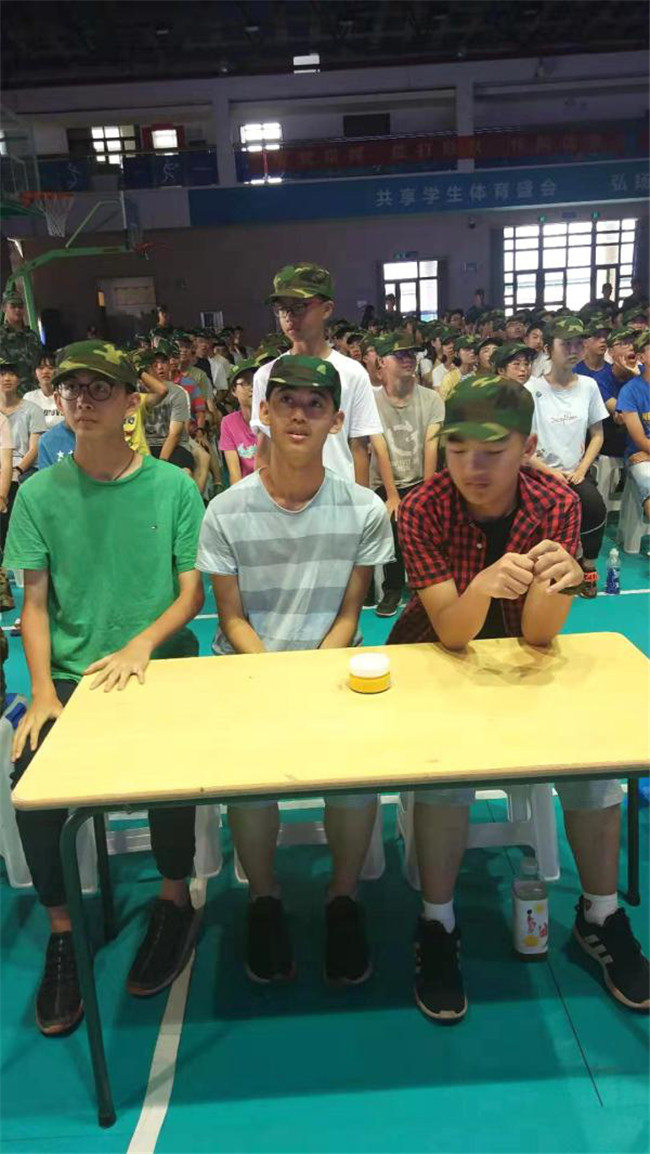 午饭后,同学们经过短暂的午休,可以有机会在体育馆的阴凉中倾听远道而来的杭外学长刘全热血澎湃的演讲,刘学长介绍了军旅生活,更新了同学们的认知,使同学们燃起了对军人身份的向往。接着,我们进行了知识竞赛,主持人十分幽默风趣,同学们积极地竞争着,台下的同学也看得津津有味。比赛结束后,我们竟然可以继续在体育馆中训练,因此,同学们都斗志高昂,迸发出的力量是上午的好几倍。因为大家的热情,倒计时排演出色得完成了,待我们坐下,一位同学为我们带来了感情充沛的演讲,赢得了全场的喝彩,接下来的时间里,大家根据演讲排练了各种队形,下午在欢声笑语中度过了。