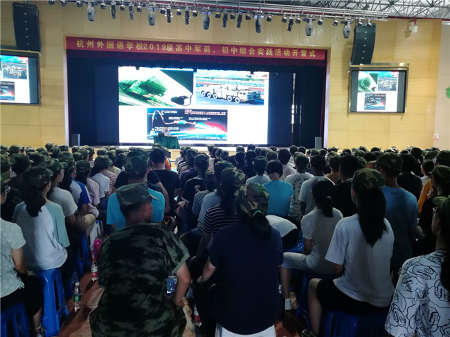 8月28日下午,我校邀请2009届校友刘全上尉为初一、高一、剑桥高一年级全体学生进行国防安全教育。