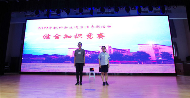 随后进行的是新生适应性综合知识竞赛活动。该活动的主要目的在于以赛促学,让学生们在竞赛准备过程中认真学习学校规章制度,了解生活常识。