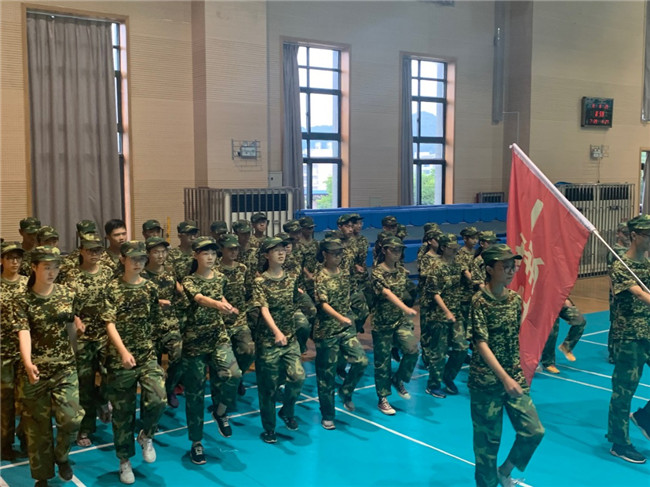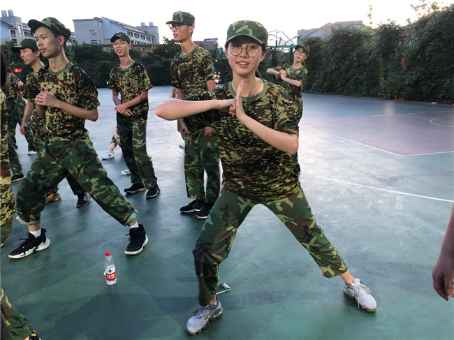 今天难得下雨,天气十分凉爽怡人。经历了前几天未曾间断的阳光曝晒,今天终于不用再感受它射在身上的感觉。同学们显得格外轻松,教官们也难得网开一面,安排我们在二楼室内体育馆中无比舒适地集训。经过整整四天的刻苦训练,相比于最初,我们已经有了明显的提升。