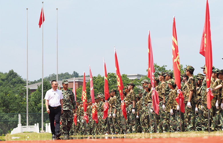 13时,伴随着庄严的国歌声,闭营式正式开始。我校党委书记徐继彬在总教官的陪同下检阅了军训方阵。
