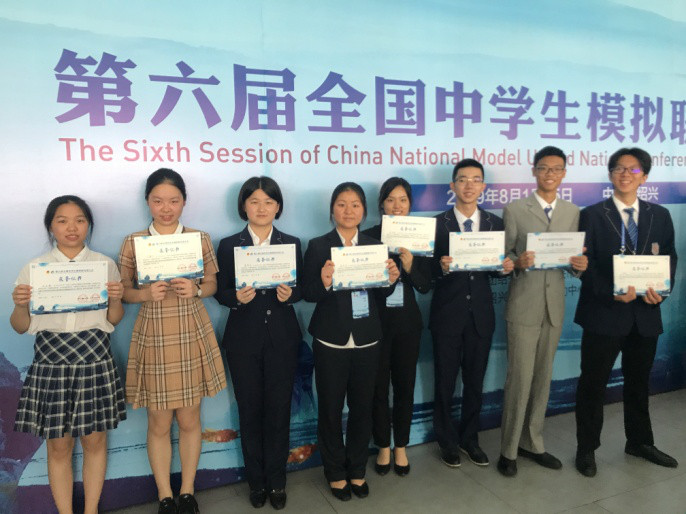 2019年8月1—5日,我校高一高二共8位学生在张蕾老师的带领下来到绍兴一中,参加由团中央主办的为期五天的“第六届全国中学生模拟联合国大会”。本次会议包括主新闻中心mpc共10个会场,议题包括“外太空”“消除饥饿”“语言保护”等一系列当今世界所面临的共同问题,邀请了包括中央、省多位领导以及北京外国语大学、外交学院等的教授莅临指导。每个会场都会有一名专家在一旁观看同学们的表现,并给予指导意见。在五天的行程中,同学们感受到了充分的思维碰撞,也体会到了别有风味的绍兴文化。